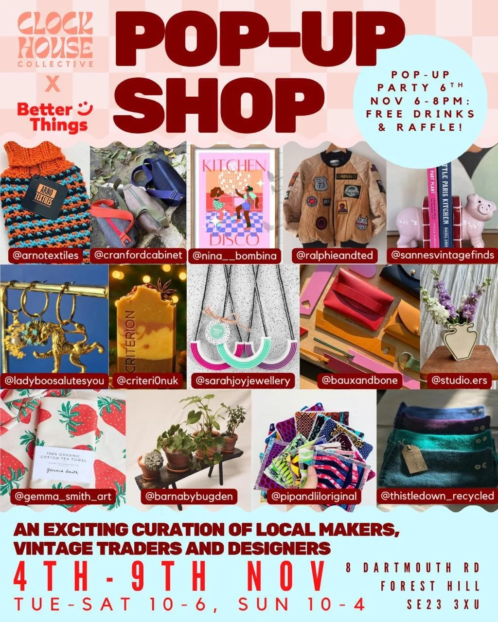 After a joyful Summer Pop-up last year, the Clock House Collective are back - bringing together another inspiring mix of local designer- makers and vintage curators. Discover unique gifts, timeless vintage finds & handmade treasures from 14 brilliant, local traders, all in one place.
